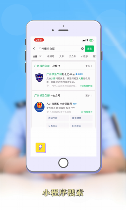也可在微信小程序直接搜索“广州根治欠薪”,选择对应小程序。