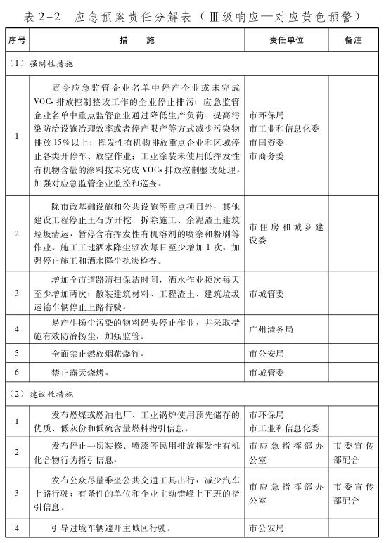 (6)提请区域联动。向省政府报告广州市应对环境空气重污染的Ⅲ级应急响应情况,并提请省协调相关城市协同减排,减少区域污染。