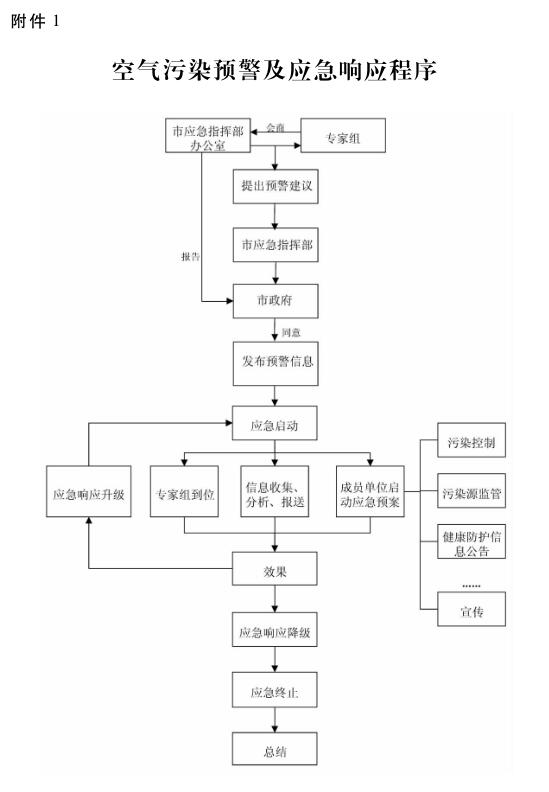 (3)负责及时向市政府报告应急处置情况,提请市政府向省政府报告空气污染应急情况,协调周边地区政府实施污染协同控制。