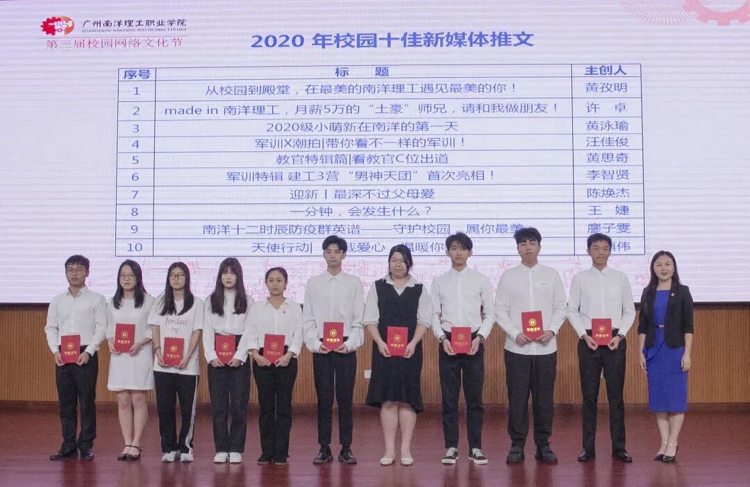 据悉,广州南洋理工职业学院第三届校园网络文化节历时一个月,将举办校园融媒体沙龙、校园抖音短视频大赛、校园公益广告大赛、校园“网络达人”评选、校园“厉行节约、反对浪费”主题征文等多项活动,可谓是亮点十足,精彩纷呈。