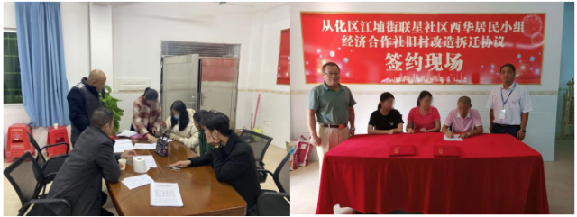 图1、2签订安置协议现场村民踊跃签约