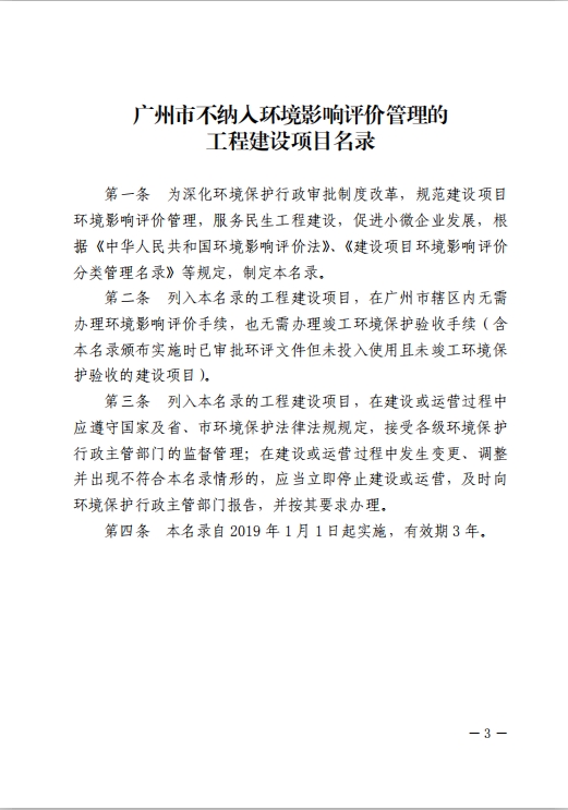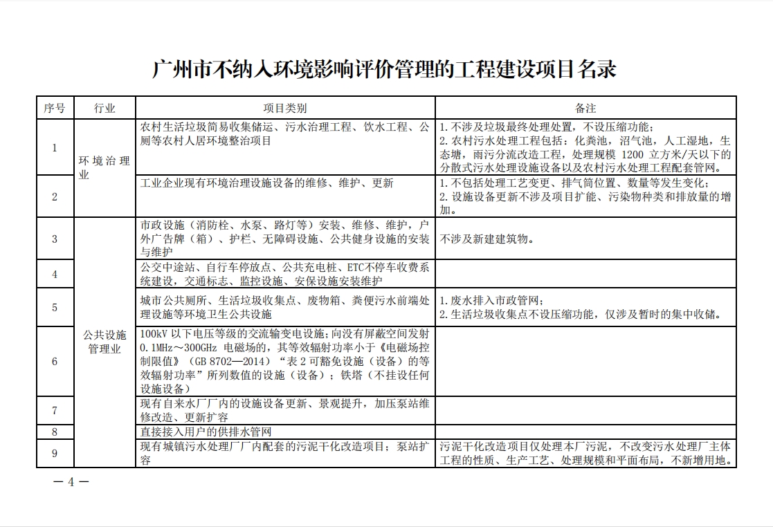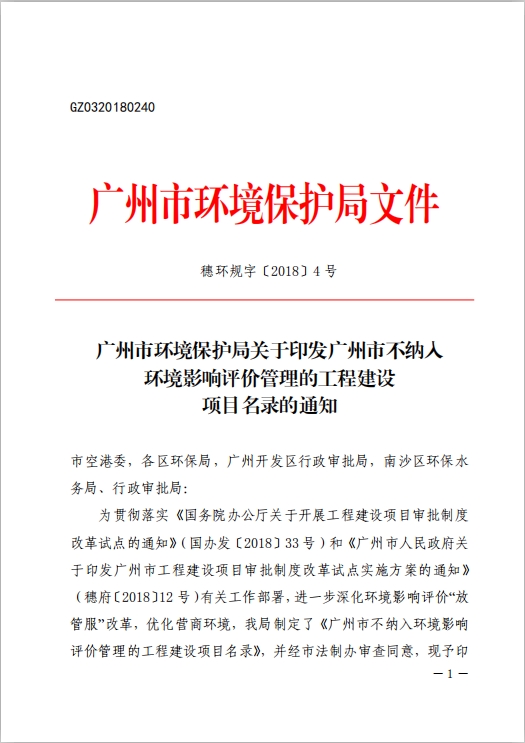广州市环境保护局关于印发广州市不纳入环境影响评价管理的工程建设项目名录的通知