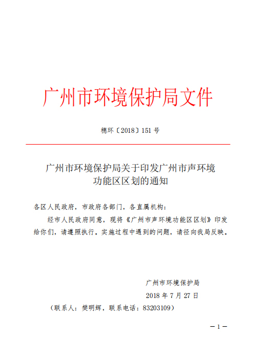 广州市环境保护局关于印发广州市声环境功能区区划的通知