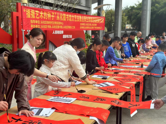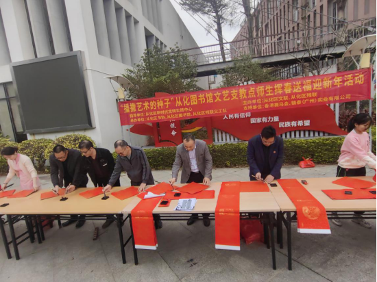 活动期间,从化文联图书馆支教点师生“挥春”,向社会各界汇报书法教学成果。区残联冯阳明理事长、区文联唐石深主席、区书法家协会黄桂明主席、方卫东副主席、区图书馆汤莉副馆长及残联义工队参加了活动。