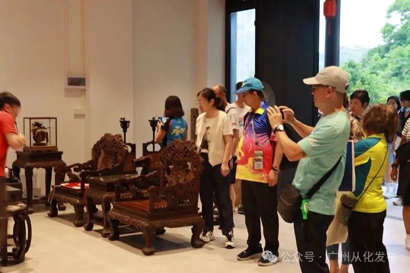 在名匠街,各个非遗工作室陈列着一件件精致的非遗工艺品,吸引了选手们驻足观看。透过这里的一砖一瓦、一景一物,以及手艺人的现场教学,让选手们近距离走进传统文化艺术,感受着从化乡村振兴带来的新气象与活力。
