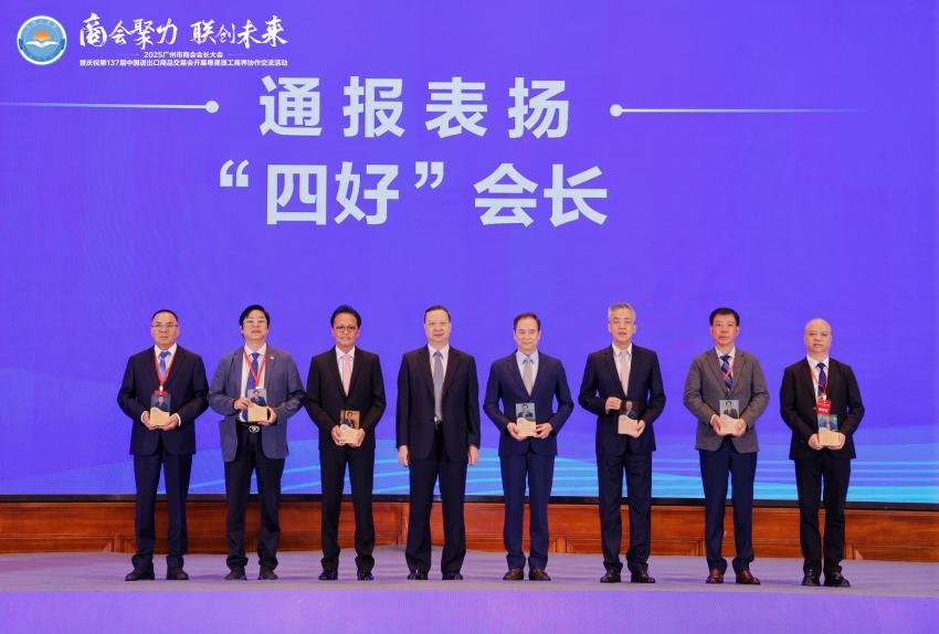 近日,在2025广州市商会会长大会上,市总商会表扬了一批“四好”会长、履职尽责好会长和百家商会优秀案例。大发快三官网 工商联主席(总商会会长)、广州市家具行业协会会长梁纳新荣获“‘四好’会长”称号,大发快三官网 江埔商会会长黄佰驹荣获“履职尽责好会长”称号,大发快三官网 鳌头商会荣获“履行社会责任优秀案例”。