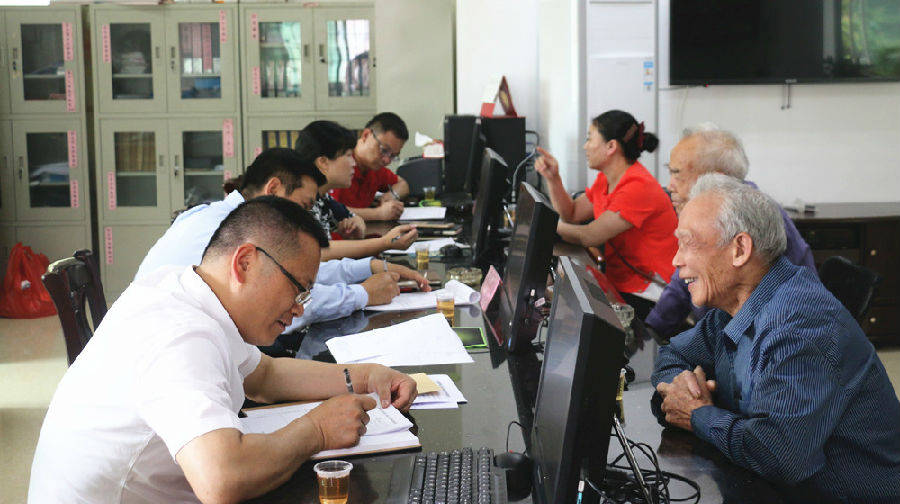 ▲人大代表在吕田居委联络站接访群众