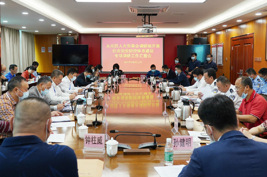 为进一步了解、掌握我区社会治安防控体系建设情况,助推平安从化建设,4月8日,区人大常委会调研组对我区社会治安防控体系建设情况开展专题调研。区人大常委会主任林奕孜,副主任邓宇恒、林康,区人民政府副区长黄小海、王智丰,部分区人大代表、区公安分局等相关单位负责同志参加了调研。