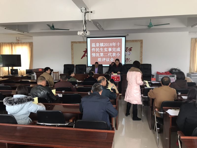 为推进镇人大代表对民生实事实施的监督,深入落实民生实事办理“一年三问”(年初问安排、年中问进度、年底问结果),使监督更加到位。1月7日至11日温泉镇人大组织镇人大代表分代表小组对温泉镇2018年十件民生实事的完成情况进行评议,活动中,部门负责人向代表们详细报告2018年十件民生实事的完成情况,代表们对民生实事的完成情况给予了肯定,对个别进度慢的实事要求加快进度,尽快完成,并围绕完成的情况提出整改的建议和意见,并以无记名投票方式对部门的完成情况进行评议。评议活动充分体现了代表当家作主,有效地监督了政府的工作。