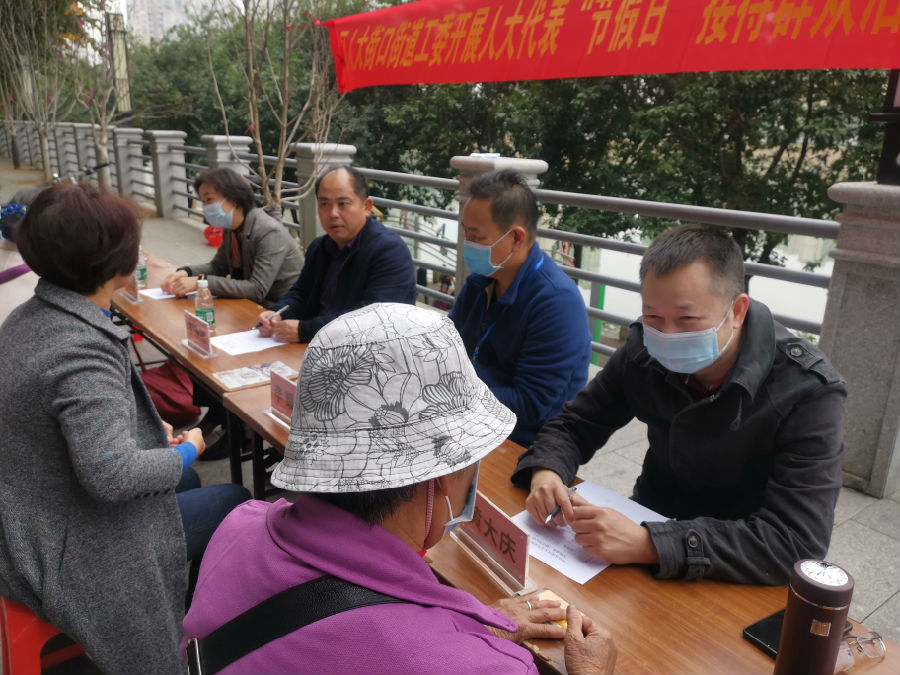 12月26日上午,区人大常委会街口街道工委到河滨南路河堤开展“三日”(墟日、传统节日、法定节假日)接待群众活动,组织人大代表主动联系群众,做人民群众的“贴心人”。