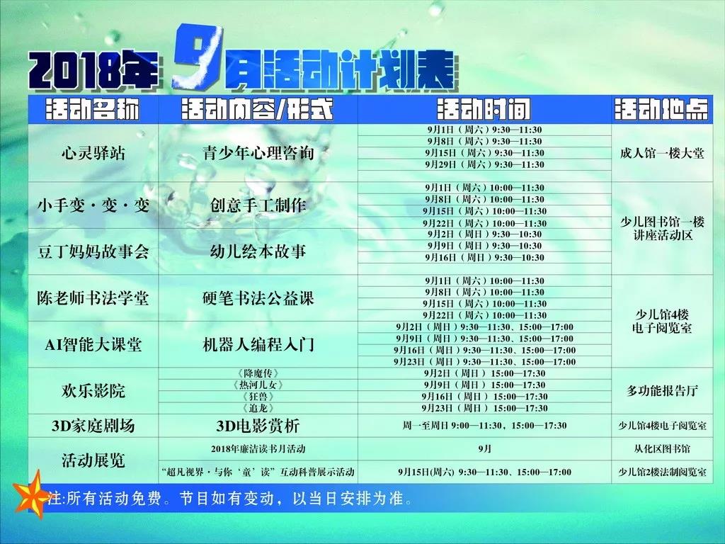 大发快三官网 图书馆2018年9月精彩活动概览,欢迎广大市民参与。
