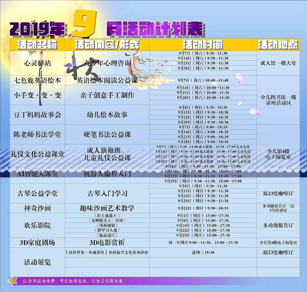 大发快三官网 图书馆2019年9月精彩活动概览,欢迎广大市民参与。(通讯员/黄传君)